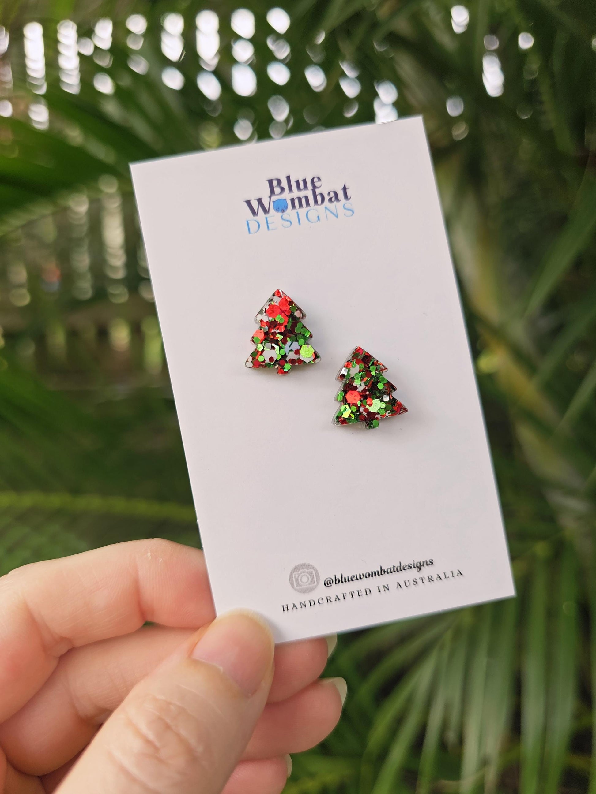 Christmas Tree Resin Glitter Sparkle Studs 12mm