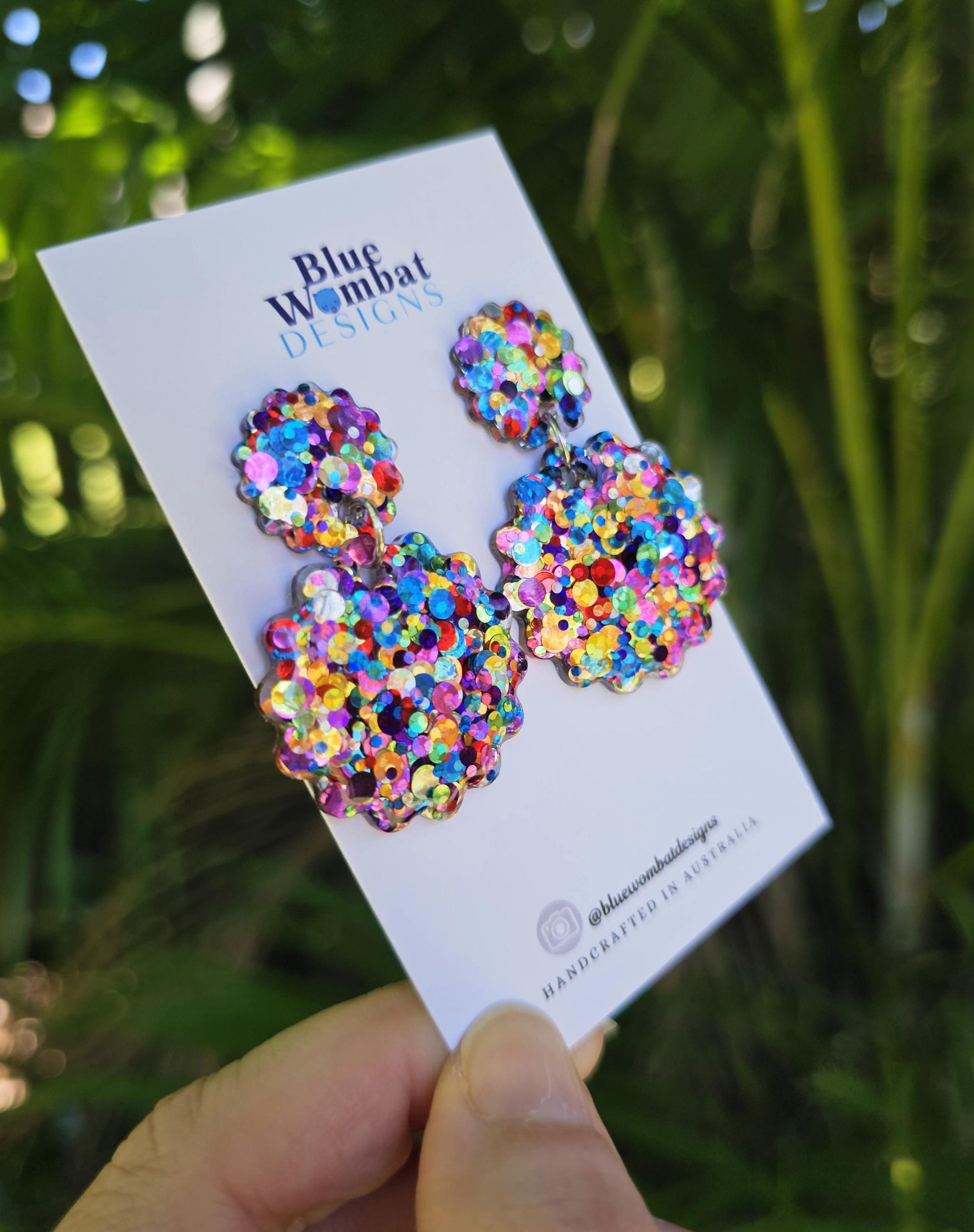Hello lovely this pair of colourful glitter resin earrings, have been hand poured and crafted especially for you♡