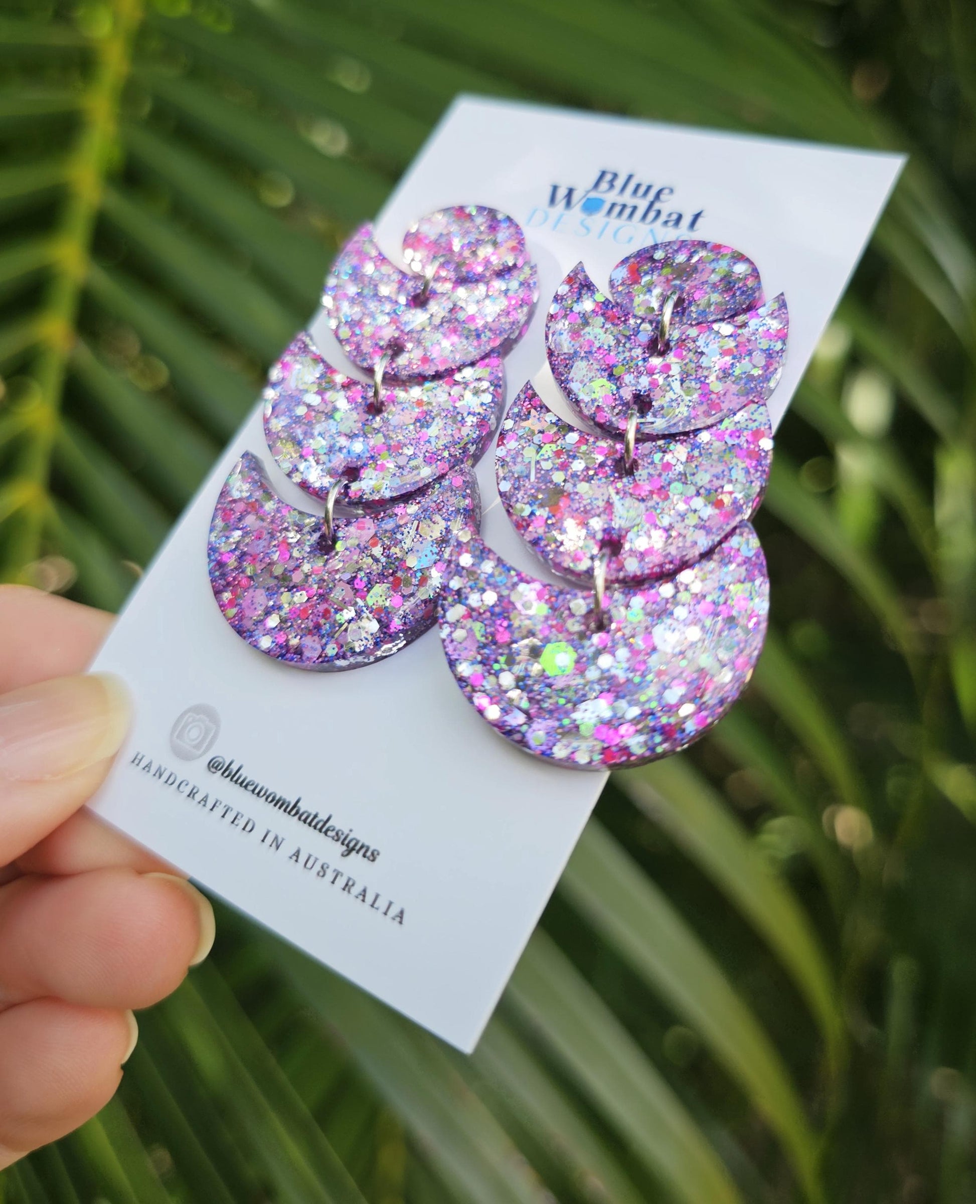 Hello lovely this pair of resin glitter dangle earrings have been hand poured and crafted especially for you♡